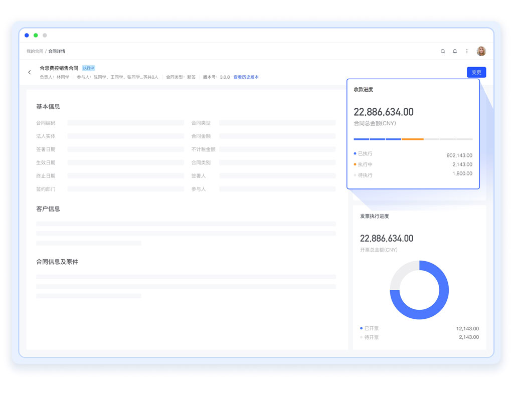 個性化訂單臺賬,聯(lián)通銷售業(yè)務(wù)與財務(wù)管理,一鍵開票縮減回款周期。銷售業(yè)績透明,隨時了解收款進(jìn)度,打造銷售“個人收款臺”,提升銷售服務(wù)效率。靈活的規(guī)則引擎幫助財務(wù)收款自動勾稽、清分、對賬和報收,實(shí)現(xiàn)資金流、票據(jù)流、財務(wù)信息流三流合一,收款憑證、銷項(xiàng)發(fā)票、合同或訂單與財務(wù)憑證的“四票匹配”。