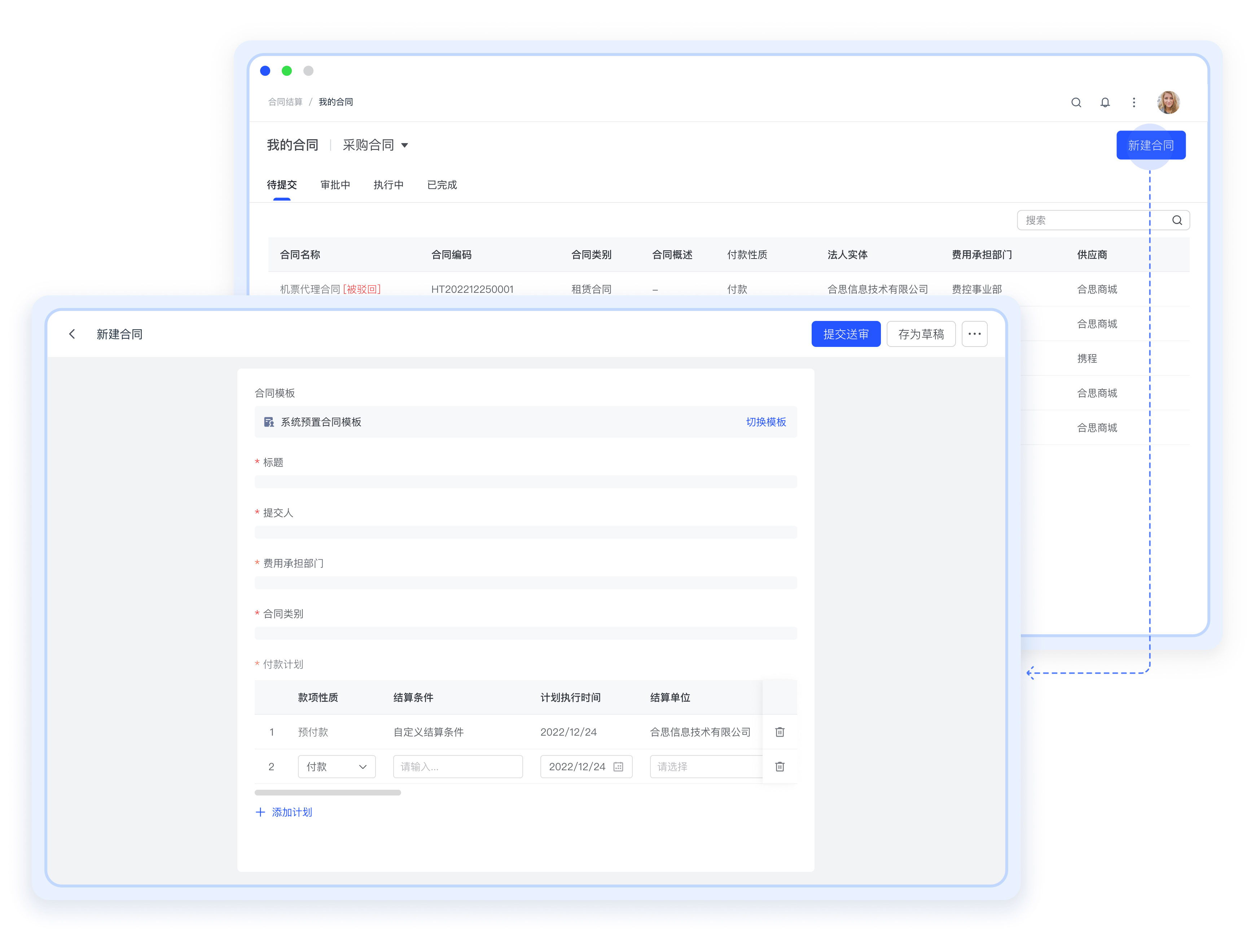 統(tǒng)一集成采購合同、訂單的信息,解決先款后票,先票后款的全場景進(jìn)項(xiàng)收票,實(shí)現(xiàn)供應(yīng)商一站式的線上對賬。基于“合同管理”和“應(yīng)付臺賬”合理規(guī)劃、執(zhí)行資金計(jì)劃,及時發(fā)起對公結(jié)算不錯付、不漏付、不多付。在線付款后,多維度的規(guī)則引擎自動化完成成本分?jǐn)偅嵘杀揪?xì)化核算效率,賦能經(jīng)營策略制定,推動業(yè)務(wù)發(fā)展。